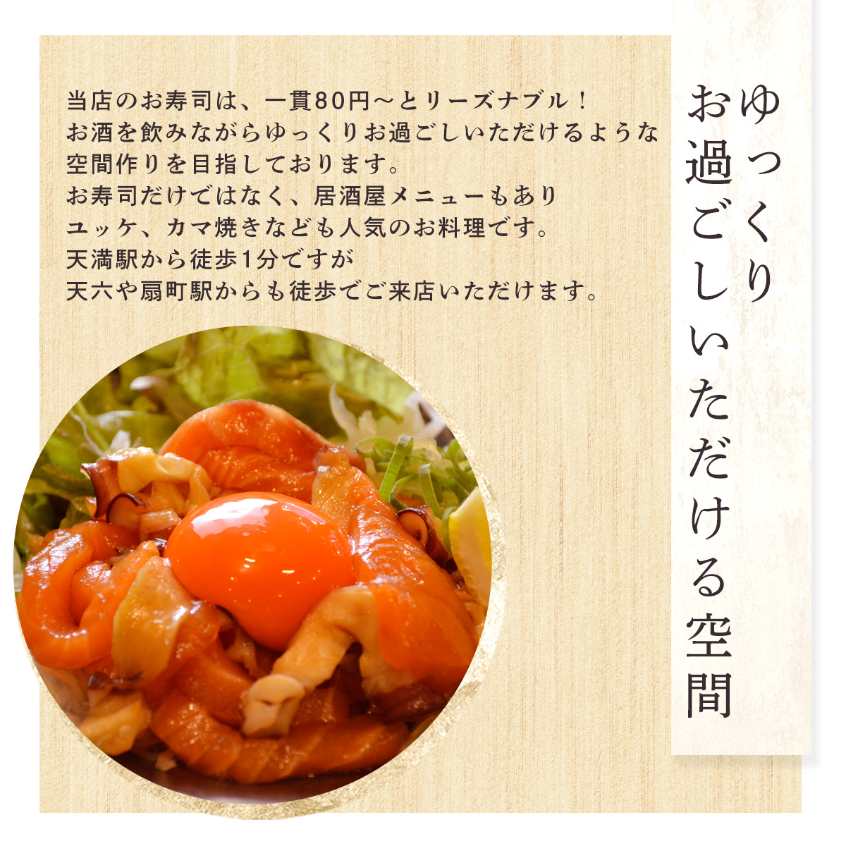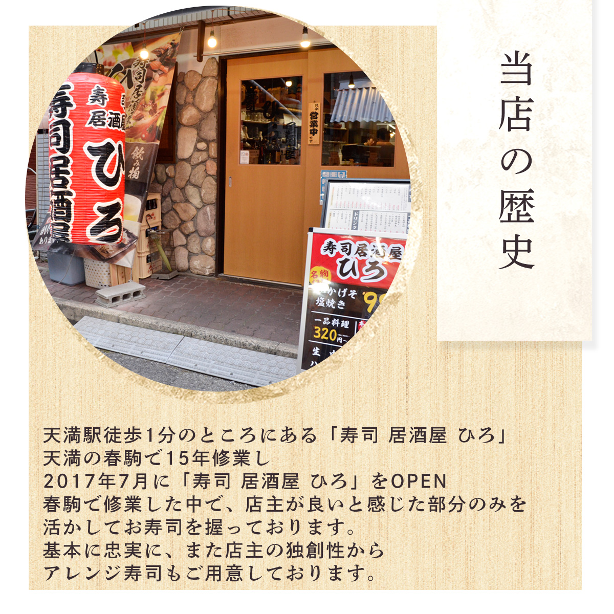 天満駅徒歩1分のところにある「寿司 居酒屋 ひろ」