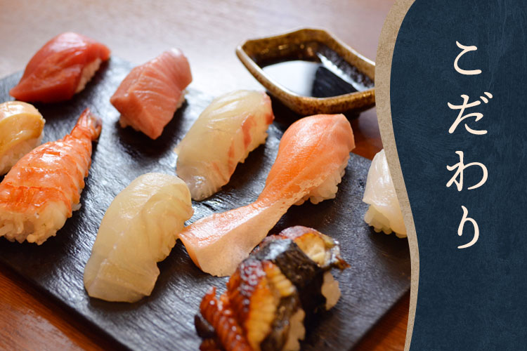 新鮮なネタの邪魔をしないように考えて作られた、お店独自のブレンド醤油を使用しております。
