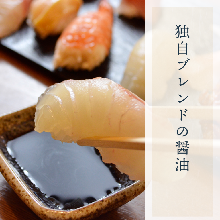 昆布やカツオをベースに、じっくり炊いて寝かせた当店のオリジナル醤油は、ネタを引き立たせてくれるのでお寿司にピッタリ!